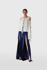 Allow UVIA to take care of your spirituality through clothing.   Made of flowing silk, this top has front lace closures, long sleeves and square cleavage. Thanks to its white color, this item can help you attract calm and spiritual wisdom, while the rhombus-shaped cuts allow creating high spiritual energy for protection and healing.   […]