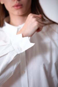 Made from soft poplin, this shirt has long sleeves and button front closure. Thanks to its spiritual color white, this item can help you attract calm and wisdom, while being a timeless piece of your wardrobe.